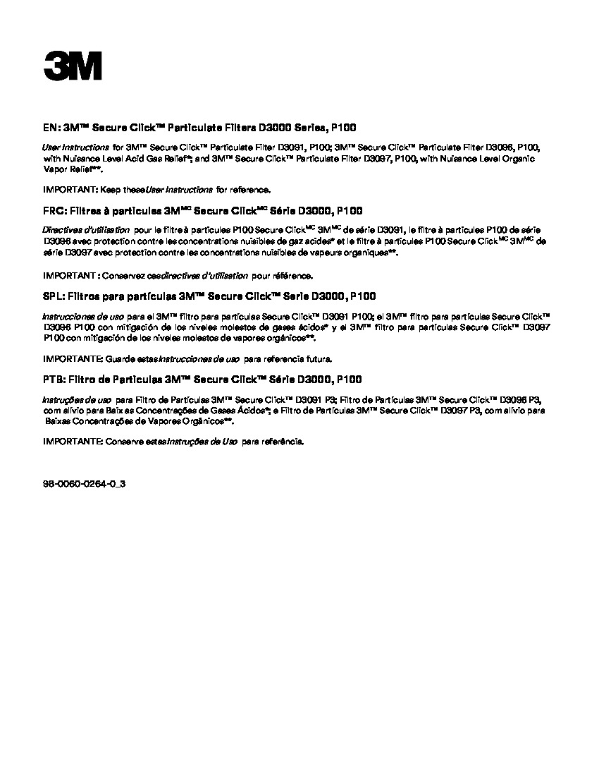 ™ Secure Click™ P3R * Hiukkassuodatin, D3138, ärsyttäviä h D3138, 3M