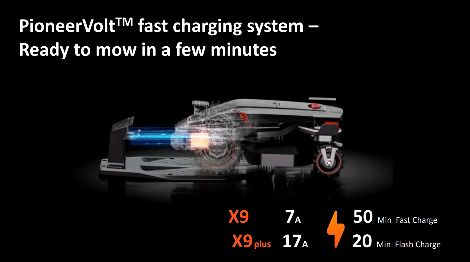 Sunseeker X9 käyttää tehokasta PioneerVolt™ pikalatausjärjestelmää.