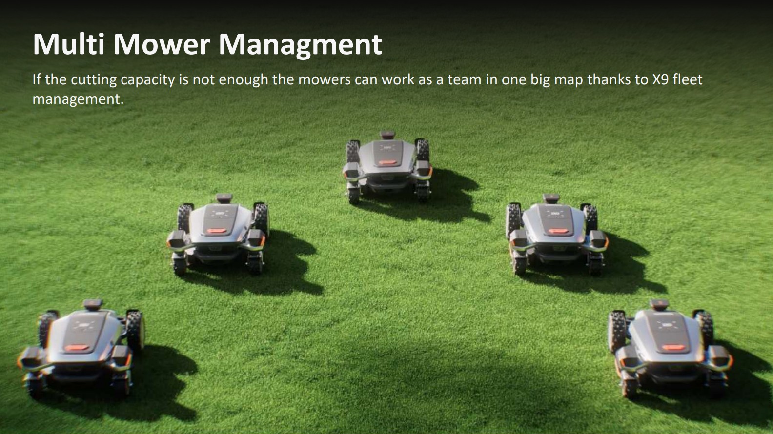 Sunseeker X9 tukee Multi Mower Management -järjestelmää.