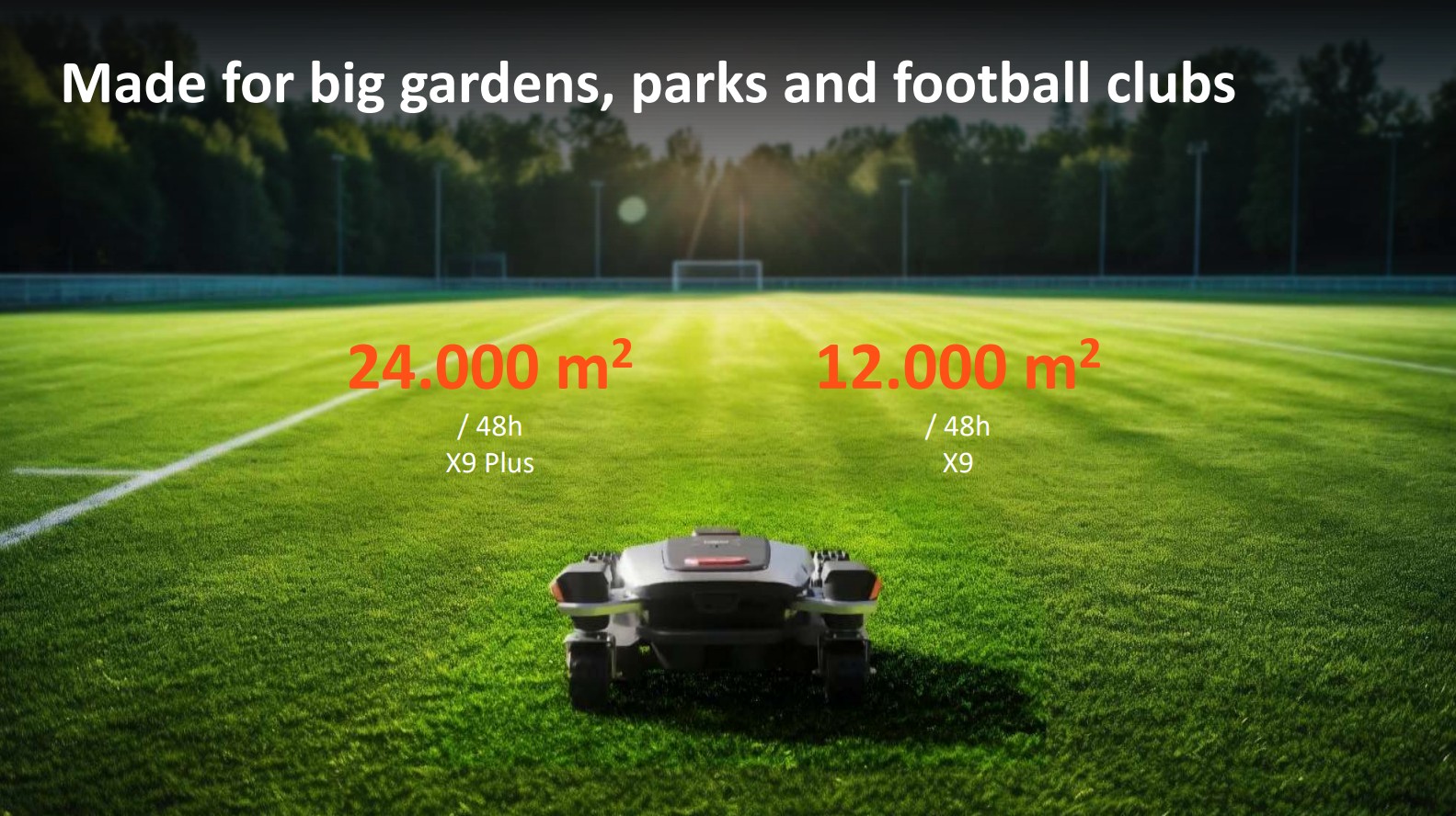 Sunseeker X9 on suunniteltu erityisesti suurille nurmialueille ja ammattikäyttöön, joissa tarvitaan tehokas, luotettava ja älykäs robottiruohonleikkuri.